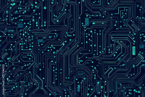 Abstract close-up of a glowing blue digital circuit board, showcasing intricate connections and technological design on a black background.