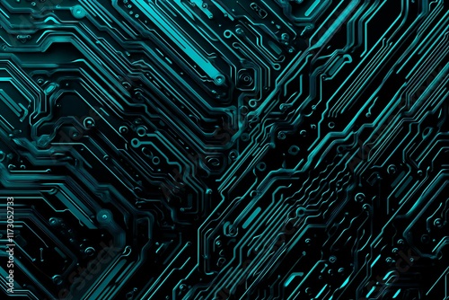 Abstract close-up of a glowing blue digital circuit board, showcasing intricate connections and technological design on a black background.