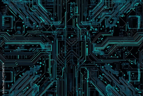 Abstract close-up of a glowing blue digital circuit board, showcasing intricate connections and technological design on a black background.