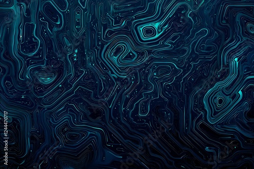 Abstract close-up of a glowing blue digital circuit board, showcasing intricate connections and technological design on a black background.