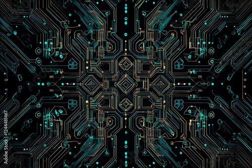 Abstract close-up of a glowing blue digital circuit board, showcasing intricate connections and technological design on a black background.