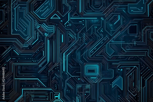 Abstract close-up of a glowing blue digital circuit board, showcasing intricate connections and technological design on a black background.
