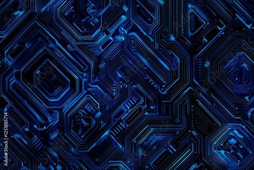 Abstract close-up of a glowing blue digital circuit board, showcasing intricate connections and technological design on a black background.
