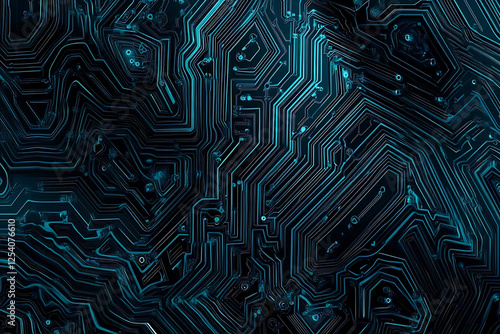 Abstract close-up of a glowing blue digital circuit board, showcasing intricate connections and technological design on a black background.