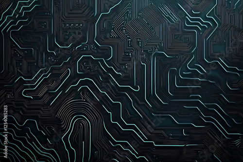 Abstract close-up of a glowing blue digital circuit board, showcasing intricate connections and technological design on a black background.