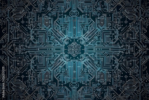 Abstract close-up of a glowing blue digital circuit board, showcasing intricate connections and technological design on a black background.