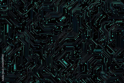 Abstract close-up of a glowing blue digital circuit board, showcasing intricate connections and technological design on a black background.