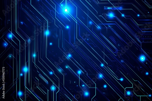 Abstract close-up of a glowing blue digital circuit board, showcasing intricate connections and technological design on a black background.