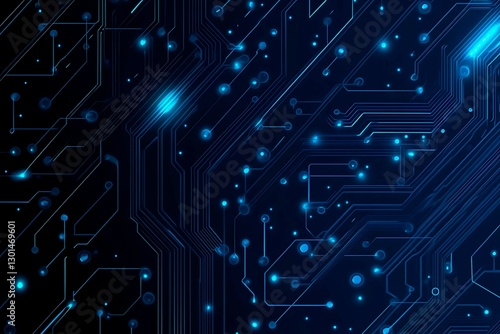 Abstract close-up of a glowing blue digital circuit board, showcasing intricate connections and technological design on a black background.