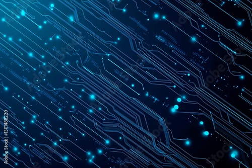 Abstract close-up of a glowing blue digital circuit board, showcasing intricate connections and technological design on a black background.
