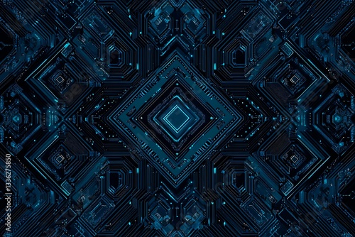 Abstract close-up of a glowing blue digital circuit board, showcasing intricate connections and technological design on a black background.