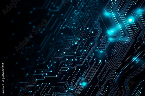 Abstract close-up of a glowing blue digital circuit board, showcasing intricate connections and technological design on a black background.
