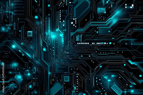 Abstract close-up of a glowing blue digital circuit board, showcasing intricate connections and technological design on a black background.
