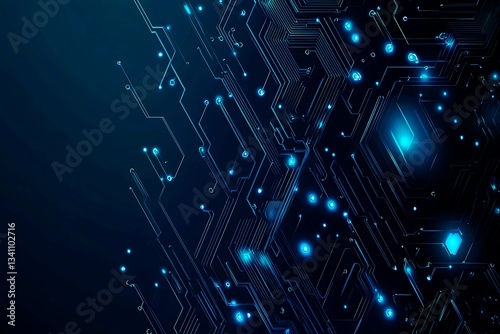 Abstract close-up of a glowing blue digital circuit board, showcasing intricate connections and technological design on a black background.
