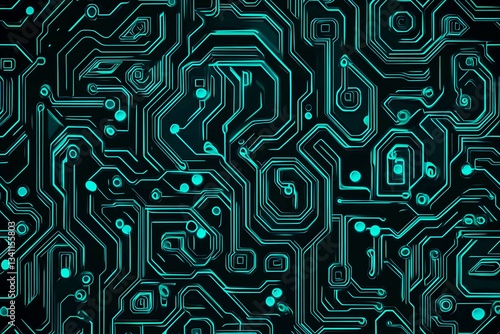 Abstract close-up of a glowing blue digital circuit board, showcasing intricate connections and technological design on a black background.