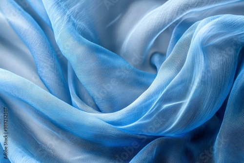 Abstract Close-Up of Draped Blue Tulle Fabric