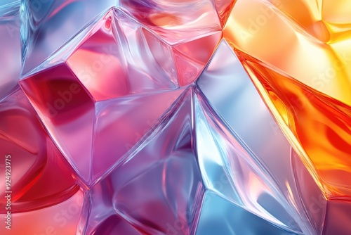 Abstract Close-Up of Multicolored, Shiny, Geometric Shapes