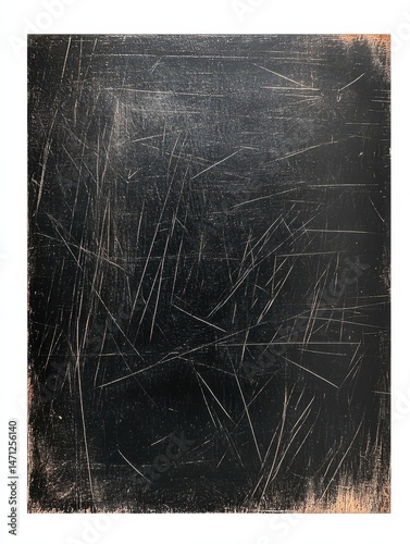 Abstract close-up of scratched black surface showing linear marks and texture in a studio setting, dark mood