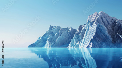 Abstract coastal scene featuring geometric cliff formations and smooth ocean surface monochromatic blue color scheme minimal texture clean horizon line