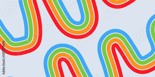 Abstract colored 70s background vector. Classic retro wallpaper with rainbow stripes and wavy lines.