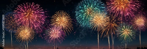 Abstract colored fireworks background with beautiful fireworks lighting up the night sky. Bokeh effect