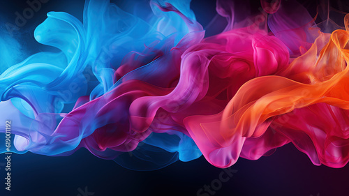 Abstract colored smoke on black background, in layered translucency with copy space. Generative AI.