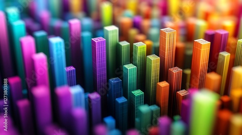 Abstract colorful 3D bar graph, data visualization, representing growth, technology, and finance.