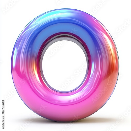 Abstract Colorful 3D Torus Shape Iridescent Pink Blue Donut Geometric Design Element