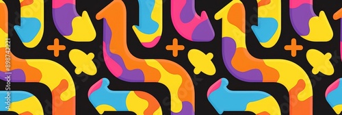Abstract Colorful Arrow Pattern with Plus Signs