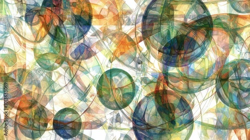 Abstract Colorful Artwork with Overlapping Circles and Lines