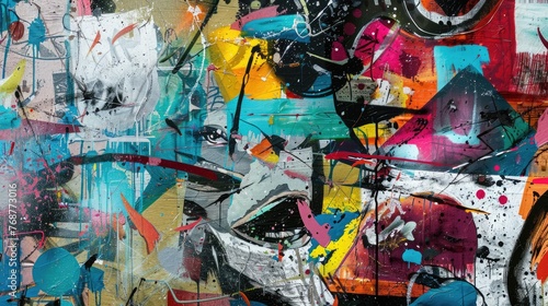 Abstract colorful background with geometric textured oil or acrylic shapes. Artistic banner with expressive graffiti wall texture and brush strokes