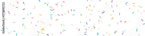 Abstract colorful confetti line background, bright minimal rainbow sprinkles scattered across white space for festive celebration and modern cheerful design