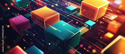 Abstract Colorful Cubes in Motion: A Digital Art Exploration