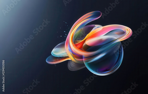 Abstract colorful digital art with swirling shapes on dark background