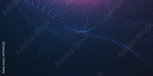 Abstract colorful digital particles wave with bokeh and light background, 3d render wave line dot background, line wave light glowing effect particular background.