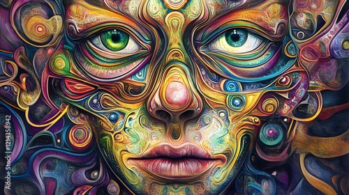 Abstract Colorful Face Portrait Swirls Psychedelic Art