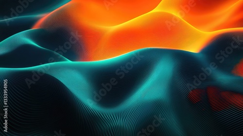 Abstract colorful landscape displaying undulating forms and vibrant light