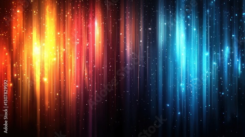 Abstract colorful light streaks background with shimmering particles, bright lights