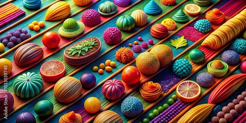 Abstract Colorful Linear Texture on Black Background for Food Photography and Design Projects