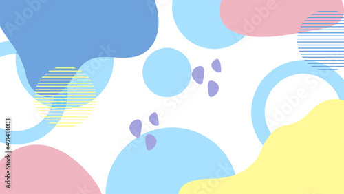Abstract colorful Memphis flat geometric shapes background. Abstract composition with lines square dot triangle circle and wavy flat style. Design for poster, presentation, card, cover, banner.