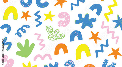 Abstract colorful organic shapes and squiggles isolated on transparent background