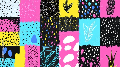 Abstract Colorful Patches Bold Geometric Patterns Vibrant Style Design