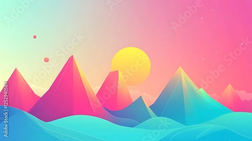 Abstract Colorful Pyramid Mountains Sunset Landscape