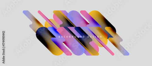 Abstract colorful shapes overlap, creating dynamic visual effect. Gradient hues blend, forming modern background design.