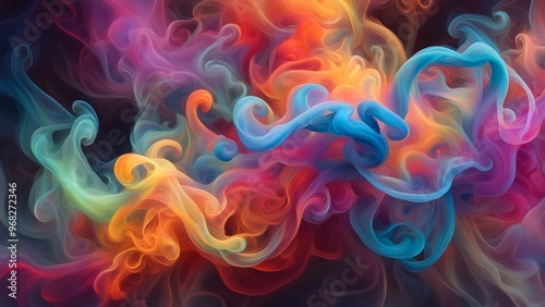 Abstract colorful smoke swirls on a dark background.