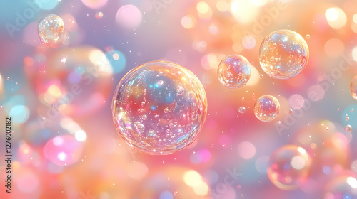 Abstract colorful spheres, soft pastel bokeh, digital art, background use, graphic design