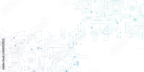Abstract Colorful Technology Background with HUD Interface Elements. Futuristic Circuit Board Pattern in Blue Tones