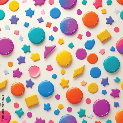 Abstract colorful wallpaper design featuring a seamless pattern of retro geometric circles and dots in vibrant pink, green, and yellow hues