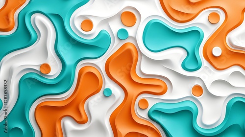 Abstract Colorful Waves Design in Blue, White, Orange with Smooth Curves and Layered Texture