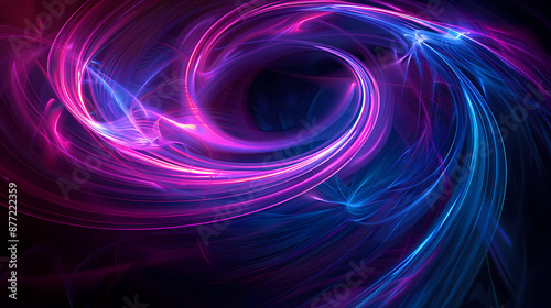 abstract composition featuring vibrant, spiraling wave-like lines on a dark background using a wide-angle lens during twilight